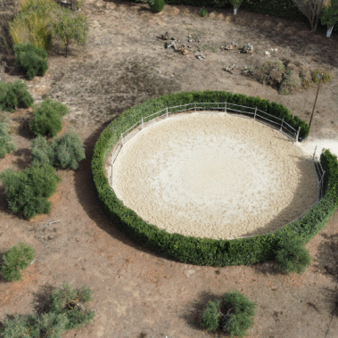 - 18 diameter round pen for lunging with geotextile surface;